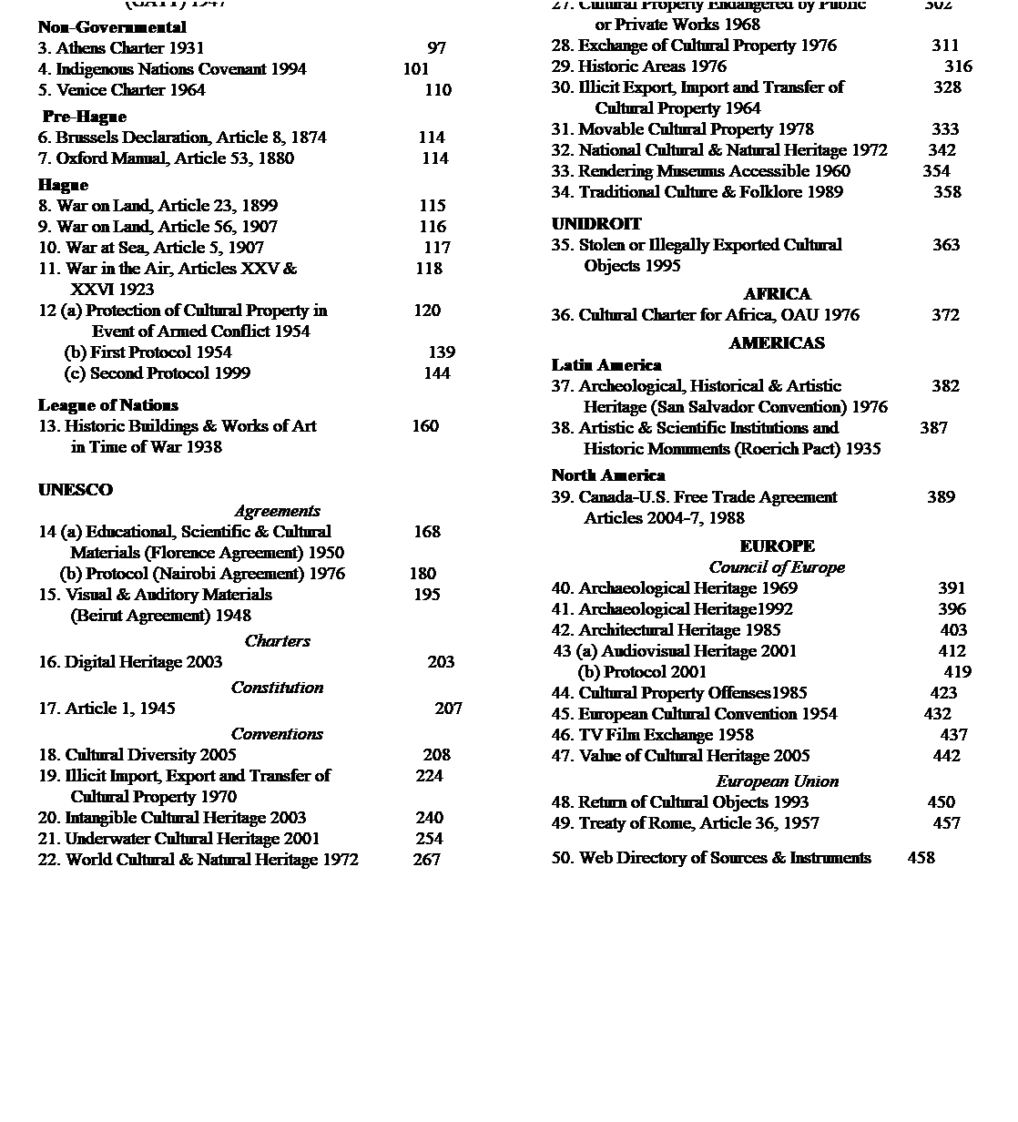 multilateral cultural property and related Instruments are presented by summary title