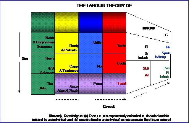 Richard Vanderberg & JSTOR Economics, as part of the Humanities & Social Sciences (HSS), is not just about mathematical precision; it is also about retracing the voyages made by economists over some four centuries of discovery. In many cases captains and crews never returned to be marooned forever in intellectual cul de sac. Sometimes, however, their voyages can be retraced and the discoveries of these early explorers, from time to time, added to mainstream thought: witness the ‘New’ Classical Economics, the ‘New’ Institutionalism and revivification of Schumpeterian ‘creative destruction‘(1950). And sometimes, the ancient voyages of even those who succeeded in returning and reshaping the mainland of economic thought may profitably be retraced and their findings reinterpreted. In this paper I will do just that for Adam Smith’s labour theory of value. I will first sketch an overview of labour during the life and times of Adam Smith. I will then reconsider his views about the division and specialization of labour, laissez passer and his labour theory of value itself. My historical observations are drawn primarily from the works of J. R. Commons (1924), W. B. Houghton (1941, Jan. & Apr. 1942, 1952); Emma Rothschild (2001), W.J. Samuel (1961; 1962), J. A. Schumpeter (1954), H.F. Thompson (1965) and Edgar Zilsel (1940a, 1940b, 1941, 1942, 1945). Based on this reinterpretation I will propose an economic epistemology, i.e., a theory of knowledge, one intended to be consonant with Smith and with the findings of analytic psychology (Hillman 1980, 1981; Jung 1953-1979; Neumann 1954; Sharp 1991). I will then apply this epistemology to generate a taxonomic foundation for a labour theory of knowledge. Taxons will include: · three dominant contemporary and institutionalized knowledge domains – the Natural & Engineering Sciences (NES), the Humanities & Social Sciences (HSS), and the Arts; · three generic categories of intellectual property rights (IPRs) that temporarily convert knowledge into property that may be bought and sold in markets – designs & patents, copyrights & trademarks, and know-how & trade secrets – before entering the public domain forever; · three material forms in which knowledge must be fixed for IPRs to exist – utilitarian and non-utilitarian matrices as well as the person – natural and legal; and, · three types of knowledge markets – the markets for tacit, codified and tooled knowledge. I will argue the strong and weak interactions of component parts of the taxonomy (Figure 1: vertical vs. horizontal) to illustrate its descriptive meaningfulness and explanatory power. I apologize before hand for some repetition and use of terms not currently part of the economic lexicon. These include: circular causality derived from neurophysiology, primary and secondary master/slave configurations derived from computer science; and, my neologism, tooled knowledge. I also revivify terms once familiar to the economic trade of Smith’s day like Reason, Revelation, Sentiment and Sensation. Furthermore, unless otherwise specified, general definitions and etymology (origin of words) are derived from the Merriam Webster Dictionary On-Line. It is not my intention to revivify the labour theory of value nor displace the Neo-Classical solution but rather to compliment them. I intend to retool the theory as a labour theory of knowledge and expose its corollary – the knowledge theory of capital. Thereby I hope to make a contribution towards resolving the contemporary incommensurability of knowledge (Kuhn 1996). This is the shadow side of division and specialization of labour in a knowledge-based economy; a wraith that Adam Smith, as we will see, foresaw. The dark side of “good paradigms make good neighbours” (Fuller 2000; 7) is evident in the near apocalyptic twentieth century clash between Marxism and Markets – both paradigms of economic thought with the labour theory of value as the theoretical bone of contention. The Labour Legacy of Adam Smith Adam Smith (1723-1790) can justly be called ‘the great mariner’. It was he who first navigated the limits of economics using what was, in his day, a branch of moral philosophy destined to become the first ‘social’ science - political economy. Economics, as a discipline of thought or “a recognized field of tooled knowledge” (Schumpeter 1954: 143) is generally dated from the 1776 publication of Smith’s The Wealth of Nations. The foundation for Smith’s concept of knowledge, however, was laid down in his other great work, The Theory of Moral Sentiments, published in 1759. With time, some of Smith’s findings have become axiomatic in economics; others, have slipped into its murky depths waiting to be recovered by some adventurous intellectual archaeologist. What fell, or was thrown, into the waters partially reflects the reactionary forces dominating political life after Smith’s death until the fall of empires in 1918. During his own life, he was considered, by many, a dissident, a friend of French économistes, a Jacobin, a revolutionary. Quoting Rothschild about the pre-revolutionary reception of The Wealth of Nations: … some weeks before it was first published in London in March 1776. “Here is a strange adventure,” the abbé Morellet wrote to Turgot on February 26; he relates that as he was waiting, earlier in the day, for the proofs of his translation of “the piece by Mr. Smith” - a section of the early chapter of the Wealth of Nations dealing with corporations and apprenticeships - he received news that the manuscript had instead been seized by the police, and was deemed to be worthy of burning. (Rothschild 2001, 87) Smith wrote just as the republican revolution in America (1776) was overthrowing a feudal order of subordination - an order in which some were created superior and others inferior by birth. The Declaration of Independence (1776) overthrew this old order with its premise: “We hold thes