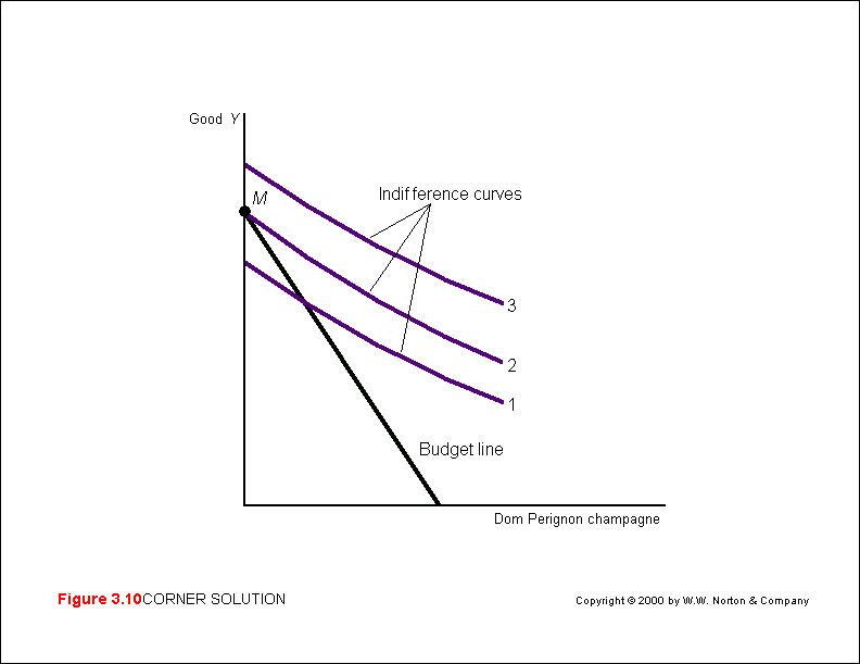In rare cases - a corner solution (M&Y 10th  Fig. 3.10; M&Y 11th Fig. 2.13; B&Z Fig. 3.12; B&B Fig. 4.7) - an individual will consume none of a commodity x because no amount of x is worth the cost. In such cases the consumer's maximum utility is obtained on the intercept of the y -axis, that is, no x is consumed
