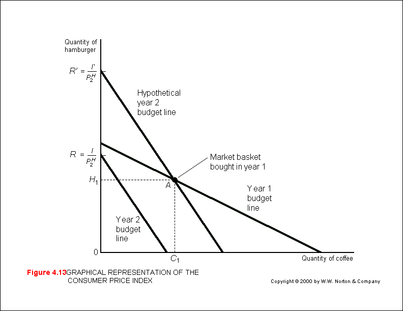 A consumer price index measures the combined income effect of price changes of given commodity combination (x, y).  It measures how much income must increase or decrease to purchase the same commodity combination (x, y) at different price levels - through time (M&Y 10th Fig. 4.13; M&Y 11th Fig. 3.17; B&Z not displayed; B&B Fig. 5.20).