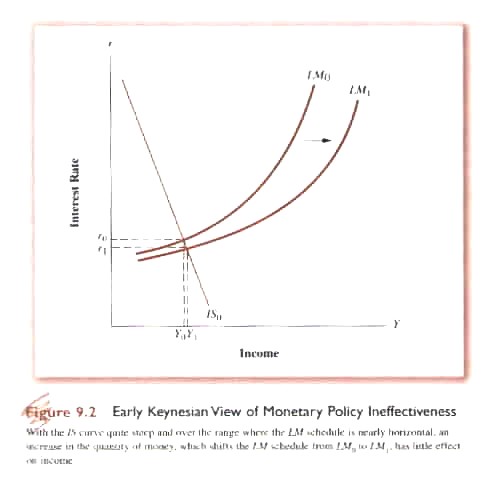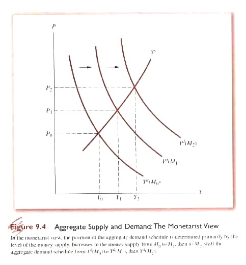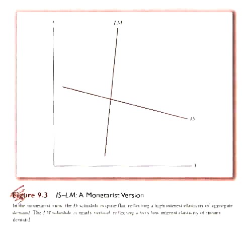 The Monetarist Model begins with the Cambridge version of the “equation of exchange”: (9.1) Md = kPY where the demand for money is a function of ‘nominal income’, i.e. the P level times real income Y, and where k is the assumed ‘stable’ or constant proportion of nominal income held as cash. Given that k was treated as a constant and the money supply M was exogenously determined by the monetary authority, the Cambridge equation could be expressed as a theory of nominal income: (9.2) M(1/k) = PY, or, alternatively as: (9.3) MV = PY where V is also assumed to be constant. Keynes had assumed that assets or wealth (Wh) would held either in the form of cash money or other assets, specifically an homogeneous category called ‘bonds’, i.e. interest earning financial assets. The key for Keynes in determining how much would be held as cash and how much as bonds was the interest rate. Put another way, k would vary with the interest rate (r). If r rose the speculative demand for money would fall as would transactional demand. If r fell the demand for cash would rise. Given that k was now treated by Keynes as a variable rather than a constant the equation of exchange could not be used to generate a theory of nominal income. It was this conclusion that the Monetarists contested. The Monetarist (specifically Milton Friedman and his disciples) began by accepting Keynes’ assumption that Wh could be held either as cash or income earning assets. However, they did not accept that there was an homogenous category of such other assets called ‘bonds’. Rather they believed that: (9.4) Md = L(P, Y, rB, rE, rD) where r was the rate of return: - on bonds (B) known as the interest rate; - on equities or company shares (E) known as dividends plus capital gains; and, - on durable goods including real estate, works of art and other physical assets (D) known as appreciation. According to the Monetarists any increase in any one of the 3 types of r would result in a decline in the demand for money but would be offset by compensatory decreases in one or both of the other rates of return thereby keeping k stable. For example, when the price of stock equity went up, the price of bonds would tend to go down. Three differences can be drawn at this point between Keynes and the Monetarists: a) for Keynes the demand for money was unstable because of changing ‘animal spirits’, i.e. investor confidence. For the Monetarists, the demand for money was stable, implicitly because the increase in one kind of r would tend to be matched by a decrease in another; b) for Keynes there were different types of demand for money: transactional, precautionary and speculative. For the Monetarists, the demand for money was the demand for money as a useful assets and difference in the types of demand were not material; and, c) for Keynes, Wh was composed of cash and a homogenous category of interest earning assets called bonds. For the Monetarists, there were different rates of return for different ‘financial’ assets, e.g. bonds, equities and durable goods. Restating the Cambridge equation, the Monetarist theory of money demand becomes: (9.1’) Md = k (rB, rE, rD) PY where k is no longer a constant as in the Classical Model but rather a variable dependent on different rates of return. An increase in any of them will cause k to fall but overall they balance each other and k remains relatively stable. For the Monetarist, equilibrium in the money market exists when: (9.5) M = Md k (rB, rE, rD) PY Given the Monetarist assumption that the demand for money was stable an increase in the money supply would require either that PY rise or that rB, rE, rD fall causing k to rise. To the degree that a change in the money supply results in a change in PY, to that degree, the quantity of money is important in determining nominal income. As we have seen under the Cambridge equation with k as a constant and Ms fixed by the monetary authorities a theory of nominal income results with: (9.6) PY = (1/k) M, i.e., nominal income (PY) is equal to one over k times the money supply. For the Monetarists, the other factors in equation 9.5 (rB, rE, rD) were assumed to have little effect on the demand for money approximating a constant, i.e. money or cash holdings (k) would be nearly constant. The Monetarist view is shown in Fig. 9.3 where the LM curve is very inelastic reflecting the assumption that k is a near constant, i.e., the demand for money is relatively inelastic with respect to collective changes in rB, rE, rD . By contrast, the IS curve is very interest rate elastic (gentle slope) reflecting the Monetarist assumption that aggregate demand is very sensitive to changes in interest rates. This can be contrasted with the Keynesian Model in which LM is relatively interest elastic while IS is relatively interest rate inelastic (Fig. 9.2). The LM and IS curves are, of course, shown assuming the price level is constant. The Monetarist, on the hand, believed that the price level was variable. The effect of the Monetarist assumptions – stable demand for money, interest inelasticity of demand for money, interest elasticity of investment and savings plus price level variability - on aggregate demand is shown in Fig 9.4 where an increase in the money supply results in an increase in Y and P. In essence, the Monetarist position is that significant change in nominal income requires changes in the money supply. Left unanswered is what determines the nature of the aggregate supply curve and therefore the effectiveness of changes in the money supply.