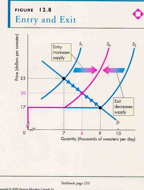 Exit reduces supply (shifts SC to left) and raises price (R&L