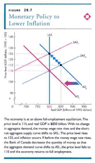 Fighting inflation and maintaining the value of the currency is the primary objective of the central bank.  When the economy enters an inflationary gap market forces will eventually raise factor prices and shift the short-run aggregate supply curve up to the left until equilibrium between aggregate demand, short-run aggregate supply and potential is achieved.  This will, however, include a significant increase in the aggregate price level, a.k.a., inflation.  If, however, the central bank tightens the money supply thereby raising interest rates and decreasing investment before factor prices can increase then it can shift the aggregate demand curve down to the left until equilibrium is achieved at a lower price level.