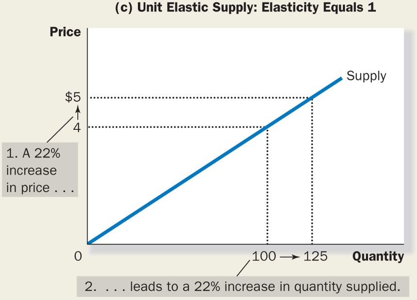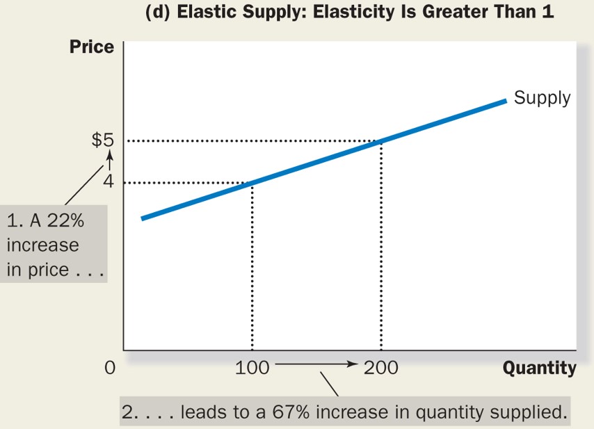 greater than one (elastic) - a near horizontal demand or supply curve where a small increase in price causes a large change in demand or supply;